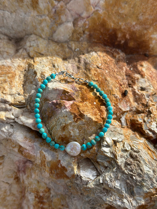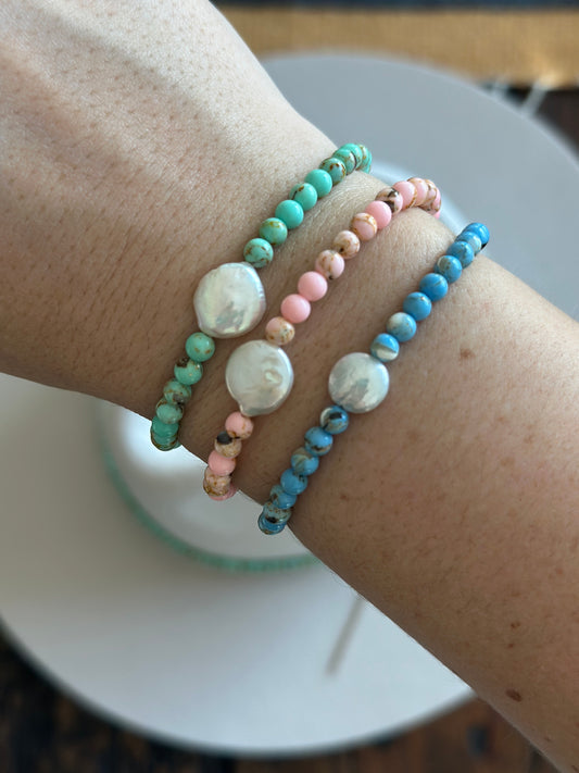 Manmade Turquoise and Freshwater Pearl Bracelets