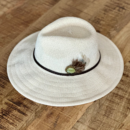 White Embroidered Desert Bloom Wool Hat
